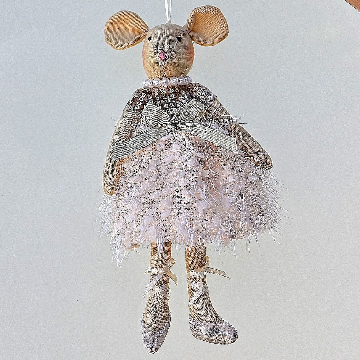 Dieses schöne, liebevoll gestaltete Ballettmaus trägt einen leicht roséfarbenen, duftigen Rock und ein passendes Oberteil, das mit Pailletten bestickt ist. Dazu trägt sie eine wunderschöne Perlenkette - perfekt gestylt zum Feiern und Tanzen!