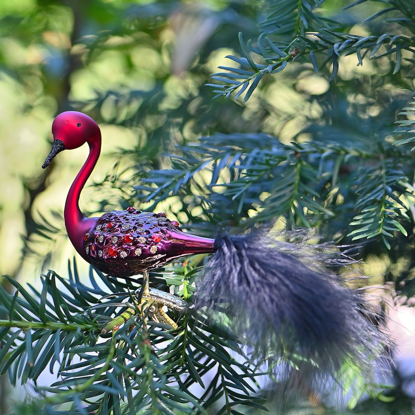 Der rote Schwan mit seiner prachtvollen schwarzen Feder trägt auf dem Glas-Gefieder 10 rote "Bohemia Crystals" von faszinierender Brillianz. Die Glassteine werden in Böhmen hergestellt.