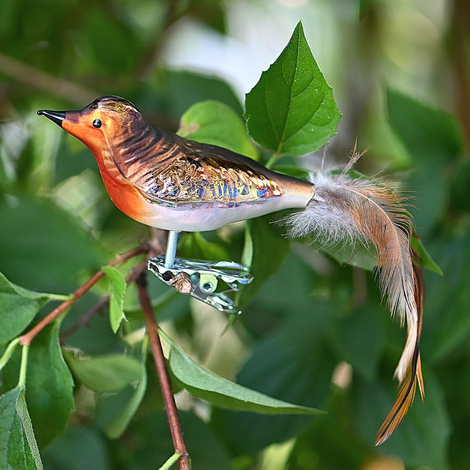 Dieses wunderschöne Rotkehlchen mit seinen dunklen Knopfaugen steht als Symbol für Glück und Frieden. Deshalb sollte es am Weihnachtsbaum nicht fehlen.
